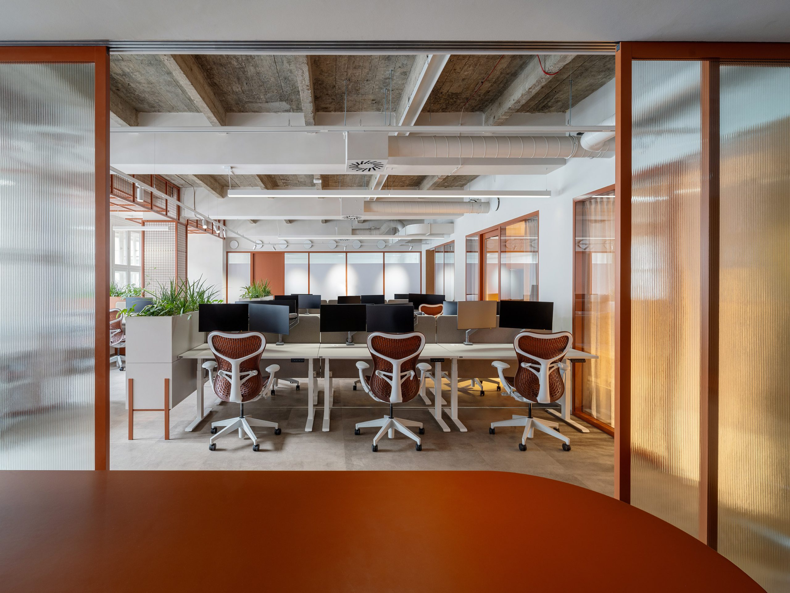 Office SURI is conceived as a clear structural system rather than a decorative interior. The design relies on order, repetition, and a restrained material language to create a flexible and efficient workplace.